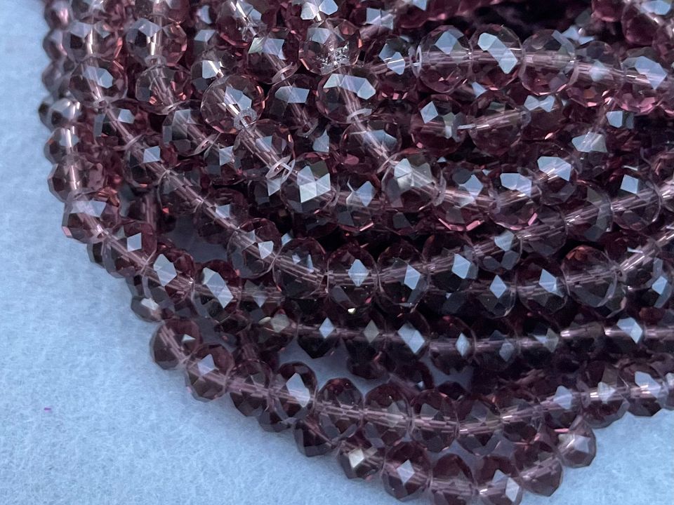 Кришталеві намистини, грановані. Розмір: 8*7мм, отвір: 1,5мм. Форма: рондель, сфера (еліпсоїд). У нитці: 70+-3шт. Ціна за 1 нитку.
