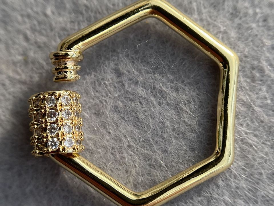 Родованим замочок для біжутерії "шестикутник", з інкрустацією фіанітами.