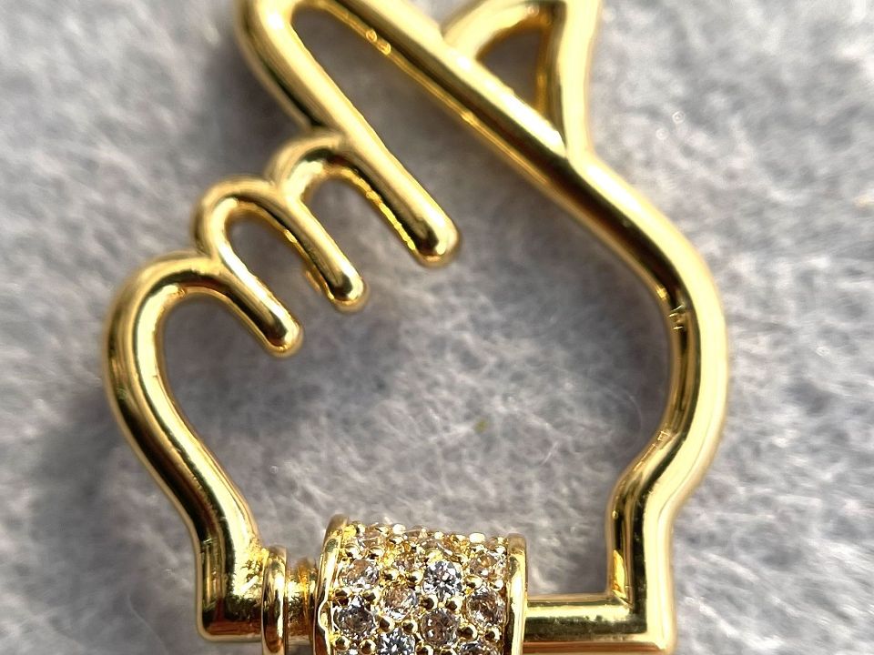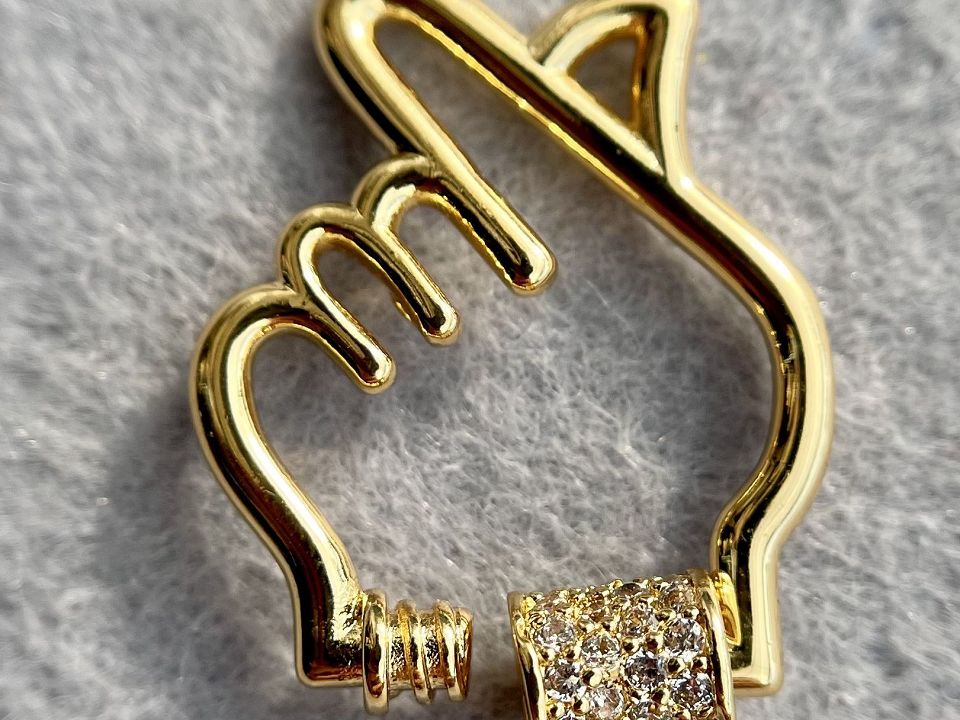 Родованим замочок для біжутерії "Серце пальцями", з інкрустацією фіанітами.