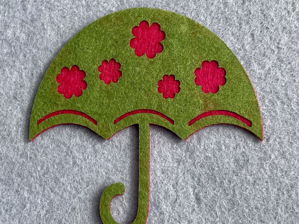 Аплікація з фетру <Парасолька> 7 * 7 см, товщина 2мм-упаковка 10шт. Ціна за упаковку. Аплікації з фетру - простий і універсальний спосіб декору одягу, іграшок, блокнотів, розвиваючих ігор та аксесуарів.