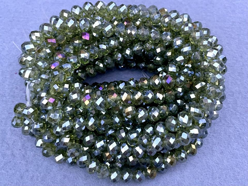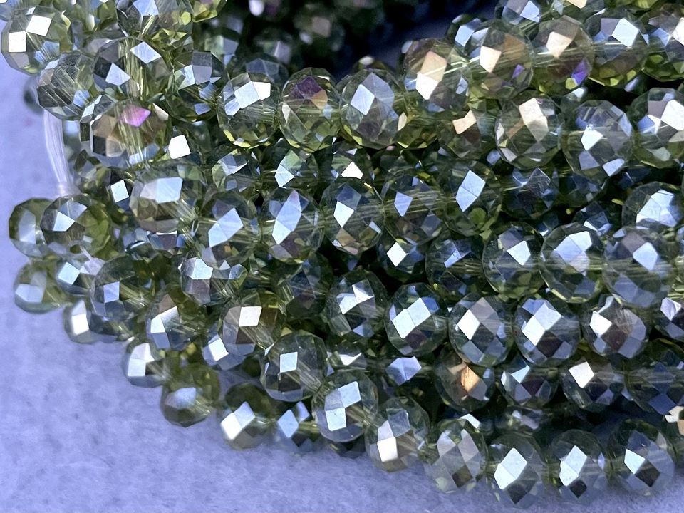 Кришталеві намистини, грановані. Розмір: 8*7мм, отвір: 1,5мм. Форма: рондель, сфера (еліпсоїд). У нитці: 70+-3шт. Ціна за 1 нитку.