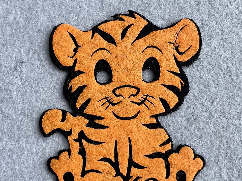 Аплікація з фетру <Тигр> 6 * 7см, товщина 2мм-упаковка 10шт. Ціна за упаковку. Аплікації з фетру - простий і універсальний спосіб декору одягу, іграшок, блокнотів, розвиваючих ігор та аксесуарів.
