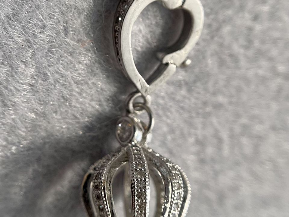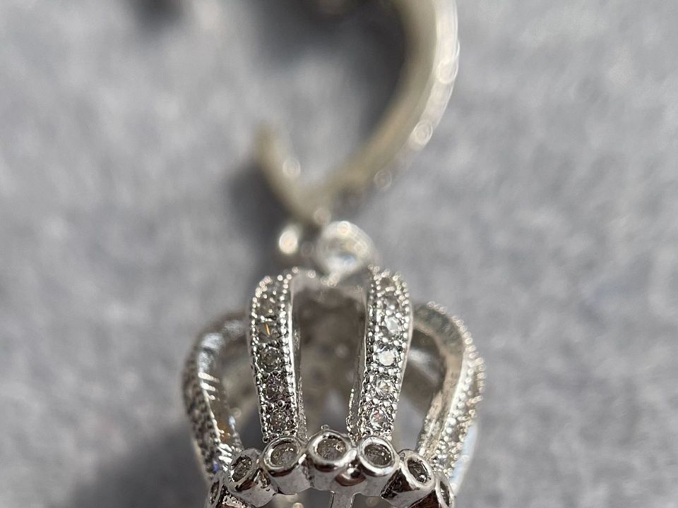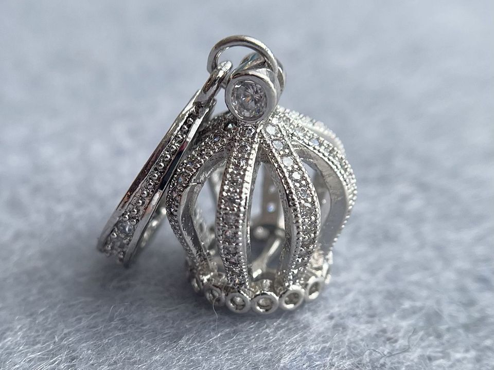 Ковпачок-корона з родієвим покриттям, інкрустований фіанітами. Розмір ковпачка-15х13 мм, внутрішній діаметр - 6-7 мм. Висота ковпачка з замком-33 мм. Відмінно підійдуть для важкої великої кисті з каменів, кристалів, бісеру та ланцюгів. Чудово підійдуть для оформлення кистей в сережках, брелків або джгутах.