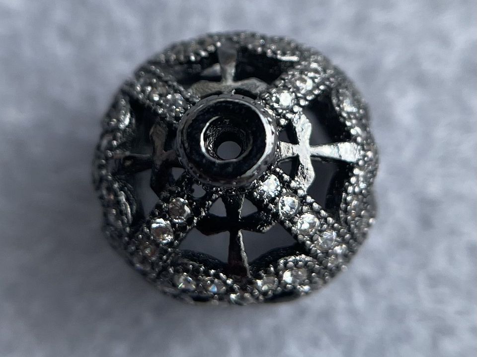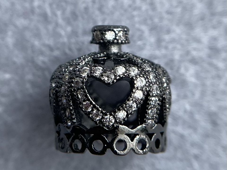Ковпачок-корона з родієвим покриттям, інкрустований фіанітами. Розмір ковпачка-13х13 мм, внутрішній діаметр - 10 мм. Відмінно підійдуть для важкої великої кисті з каменів, кристалів, бісеру та ланцюгів. Чудово підійдуть для оформлення кистей в сережках, брелків або джгутах. Ціна за 1 шт.