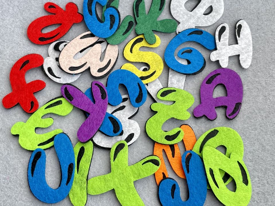 Аплікація з фетру <Алфавіт> 3 * 4 см, товщина 2мм-упаковка 26шт. Ціна за упаковку. Аплікації з фетру - простий і універсальний спосіб декору одягу, іграшок, блокнотів, розвиваючих ігор та аксесуарів.