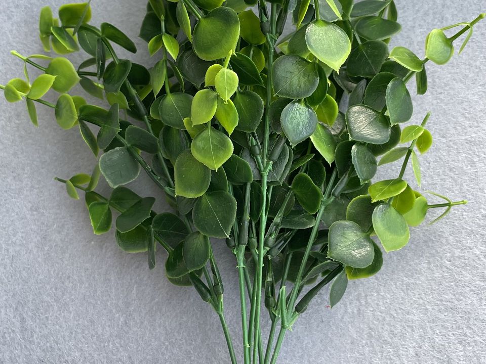 Штучна зелень. Ціна вказана за 1 букет. Букет складається з 7 гілочок. Довжина з ніжкою-35 см, довжина гілочки-18см. Може використовуватися для додавання у флористичні композиції.