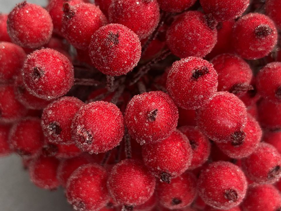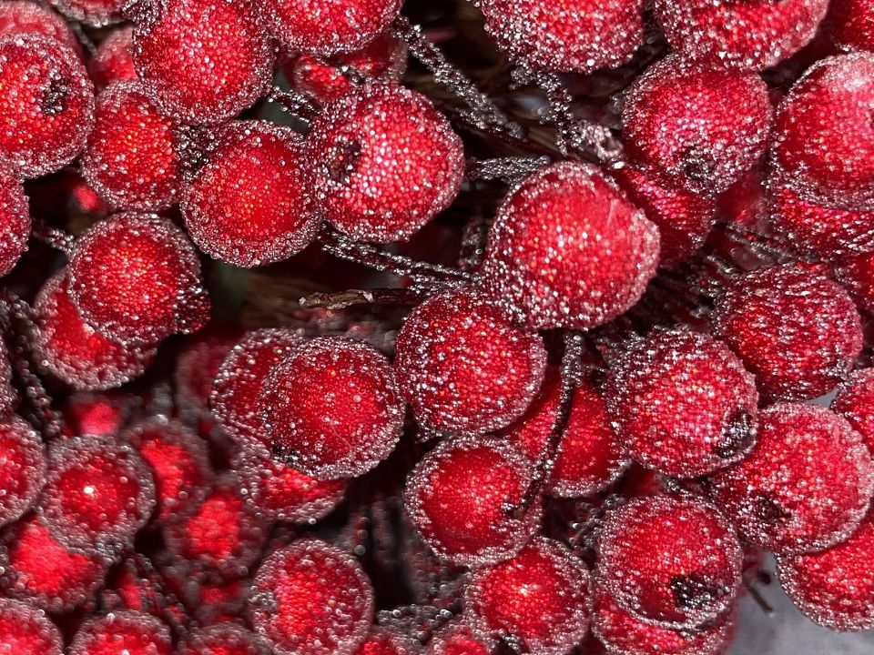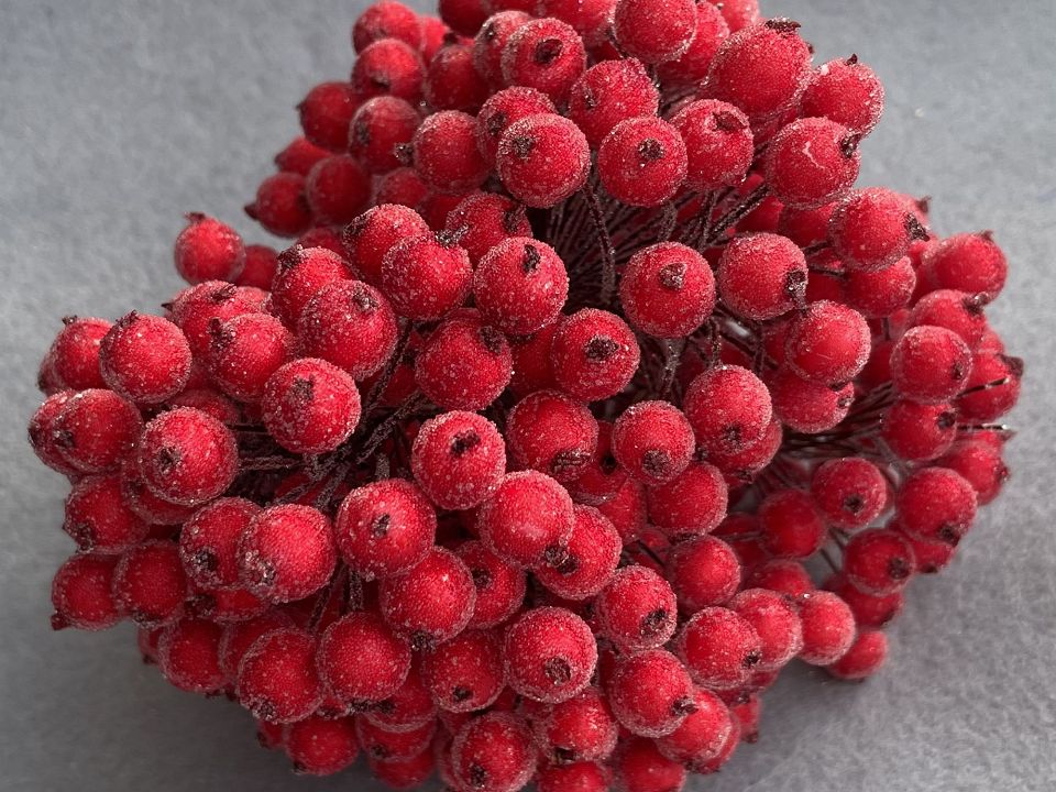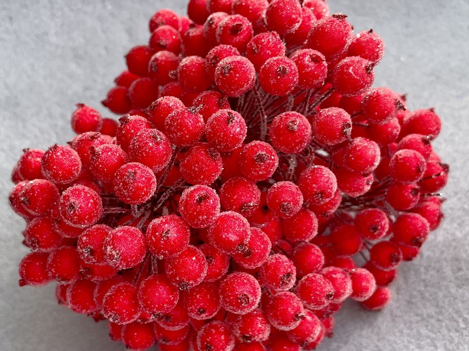 цукрові ягідки калини. Довжина дроту 12 см, діаметр ягідки 12 мм. Довжина гілочки з ягідками 15см. У наборі 200 дротів, на кожній по 2 ягідки, всього 400 ягідок. Ягідки зроблені з пінопласту кульки покритого шаром м'якого вінілу і кришталевої присипкою, що імітує лід. Тичинки використовуються при декоруванні обідків і різних шпильок а так само в різних підробки.