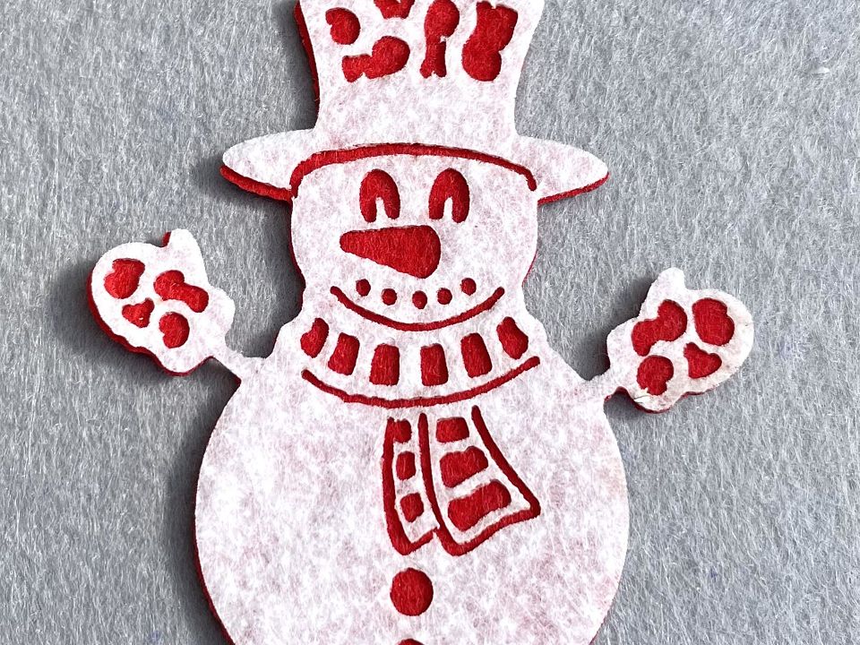 Аплікація з фетру <Сніговик> 7,5 * 6,5 см, товщина 2мм-упаковка 10шт. Ціна за упаковку. Аплікації з фетру - простий і універсальний спосіб декору одягу, іграшок, блокнотів, розвиваючих ігор та аксесуарів.