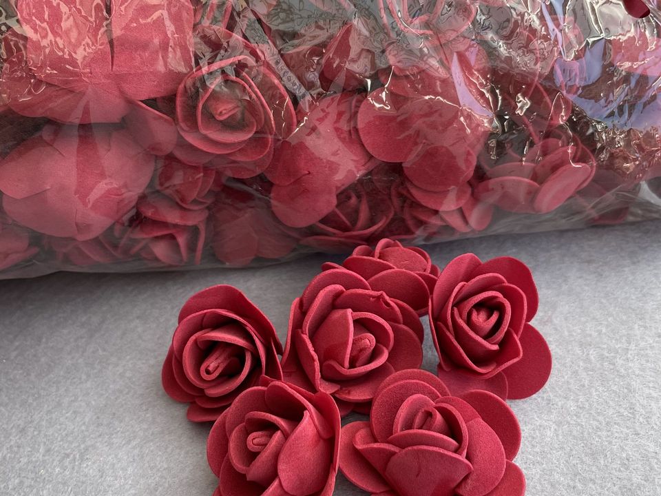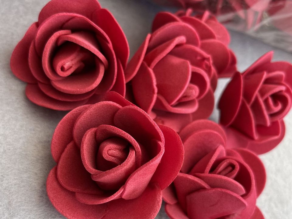Троянди з фоамірана Ø3,5-4см. Упаковка: 500 шт. Квіти з фоамірана легко розправляються за допомогою пари або фена. Розмір упаковки: 30 * 30см. Колір-бордовий