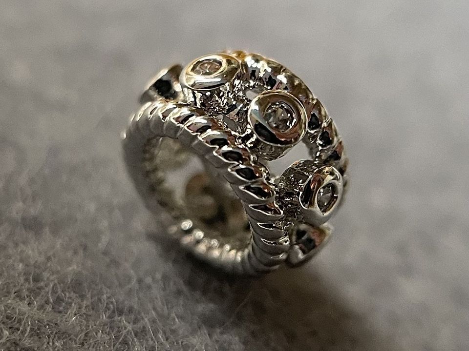 Намистини-ронделі інкрустовані Кубічним цирконієм (також називаються намистинами з фіанітами). Покриття родій Колір-сталь. Діаметр: 1см, товщина-5мм. Ціна за 1 шт