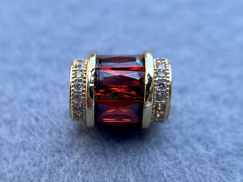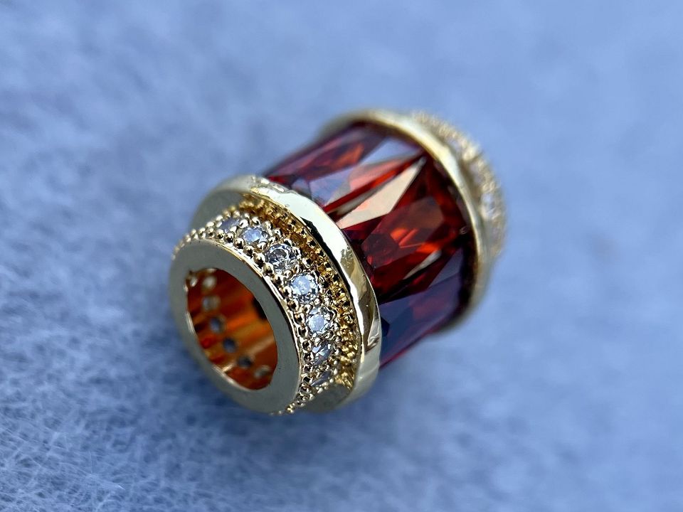 Намистини інкрустовані Кубічним цирконієм (також називаються намистинами з фіанітами) Покриття родій Колір-золото з кольоровим камінням. Розмір: 1,2 * 1см, отвір-0,5см. Ціна за 1шт З-за великого отвору ідеально підходить для різних видів прикрас, таких як: пандора, ланцюги, джгути, шкіряні браслети.