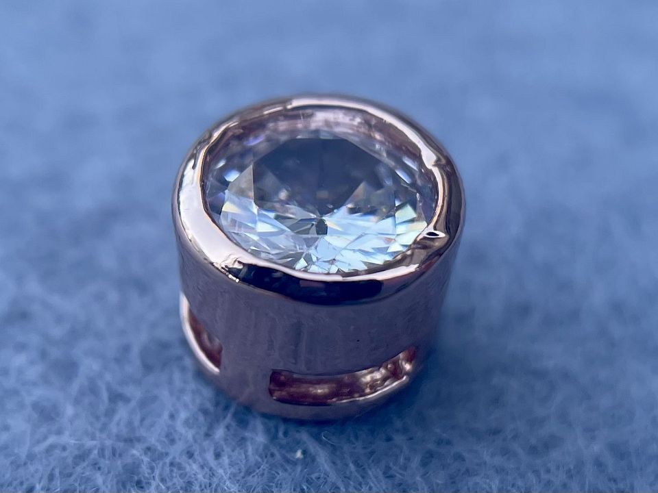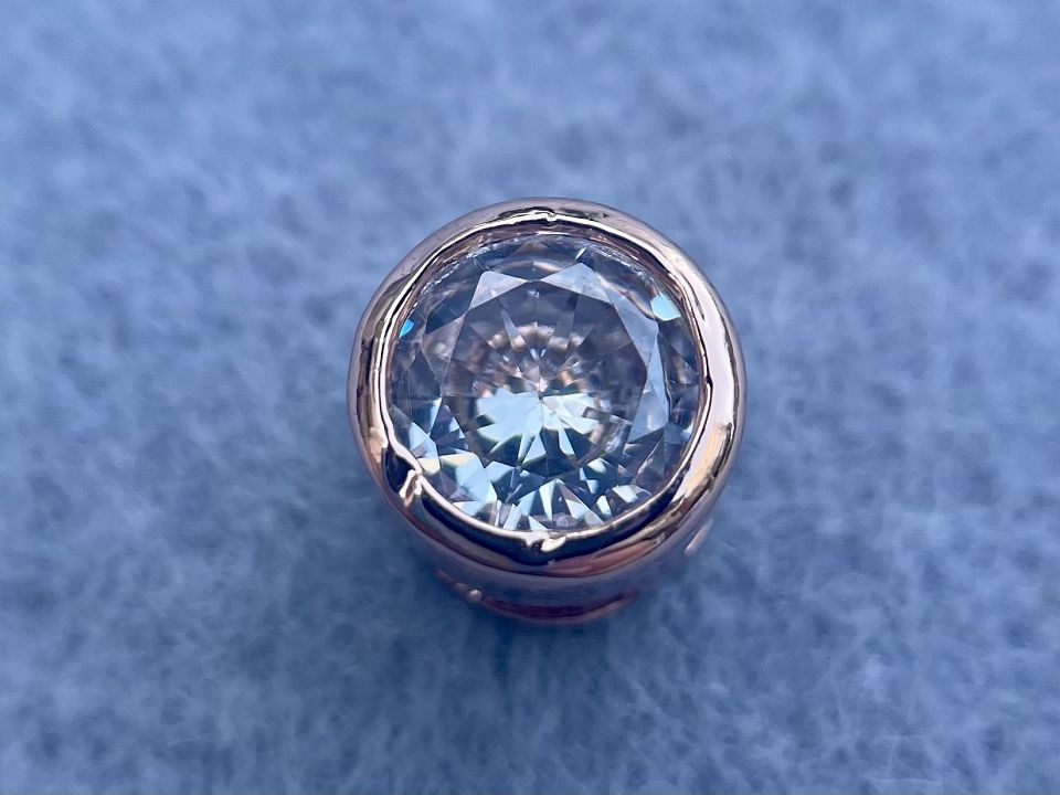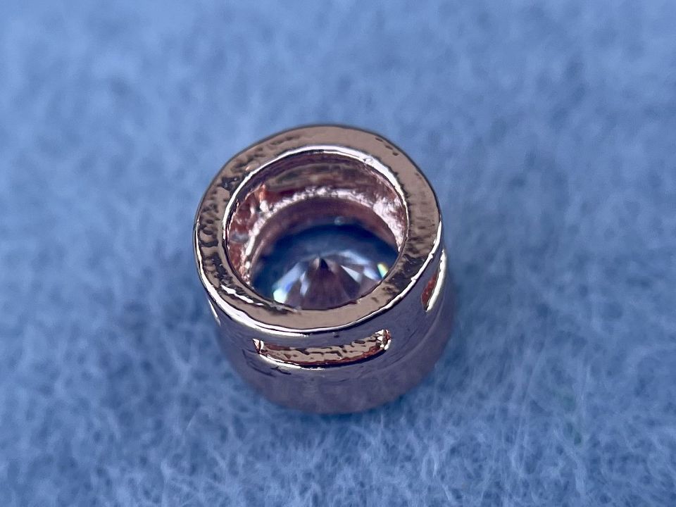 Намистини інкрустовані Кубічним цирконієм (також називаються намистинами з фіанітами) Покриття родій Колір червоний золото. Розмір: 0,8 * 0,8 см, товщина-0,6 см. Ціна за 1шт