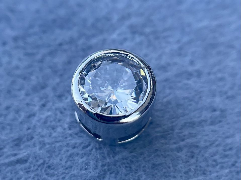 Намистини інкрустовані Кубічним цирконієм (також називаються намистинами з фіанітами) Покриття родій Колір-сталь. Розмір: 0,8 * 0,8 см, товщина-0,6 см. Ціна за 1шт