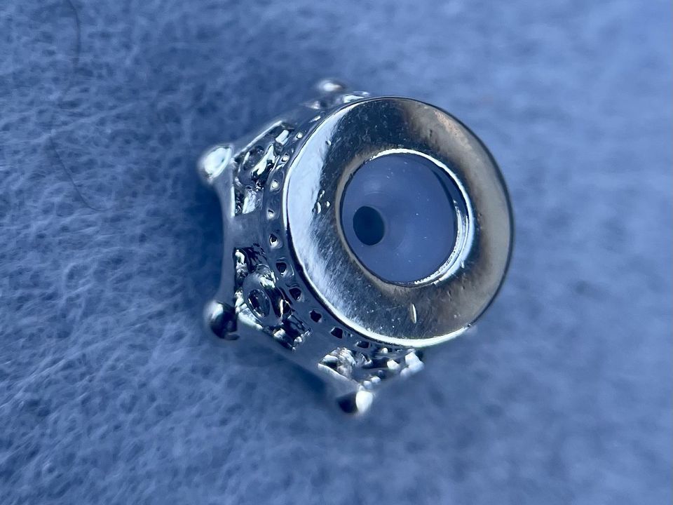 Усередині намистини є силіконова вставка з отвором 2,5 мм, яка фіксує намистину на основі і не дає по ній ковзати.
