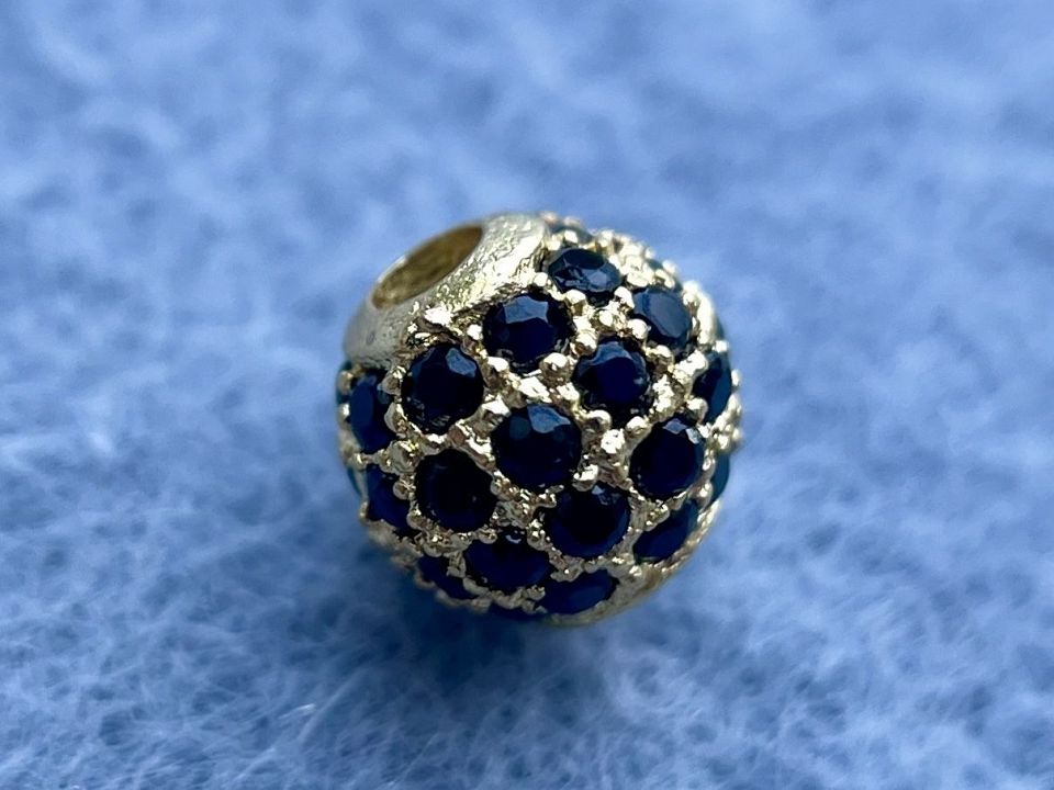 Бусина інкрустована Кубічним цирконієм (також називаються намистинами з фіанітами). Покриття родій Колір золото. Діаметр: 6мм, отвір: 1,5мм. Ціна за 1 шт