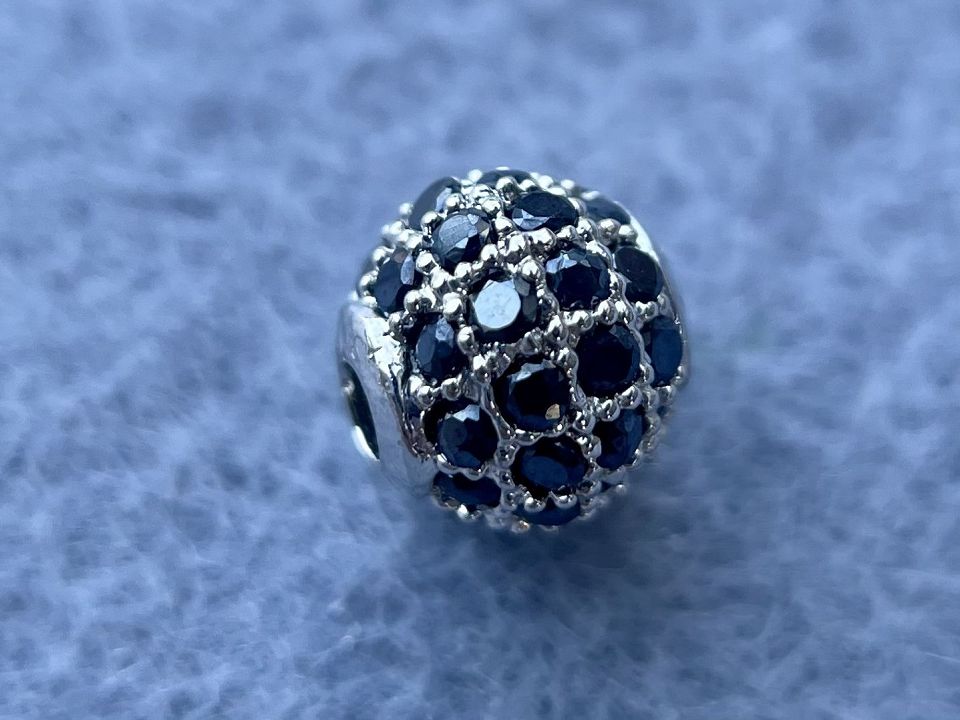 Бусина інкрустована Кубічним цирконієм (також називаються намистинами з фіанітами). Покриття родій Колір-сталь. Діаметр: 6мм, отвір: 1,5мм. Ціна за 1 шт