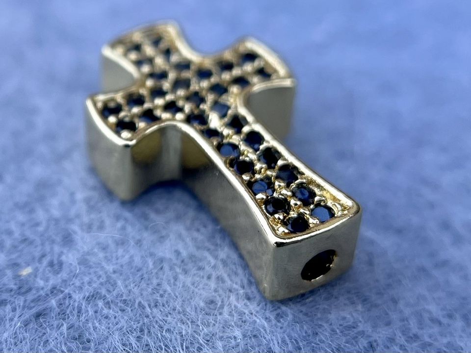 Бусина інкрустована Кубічним цирконієм (також називаються намистинами з фіанітами) Покриття родій Колір-золото. Розмір: 9*14мм; товщина-4мм, отвір-1,5мм. Ціна за 1шт