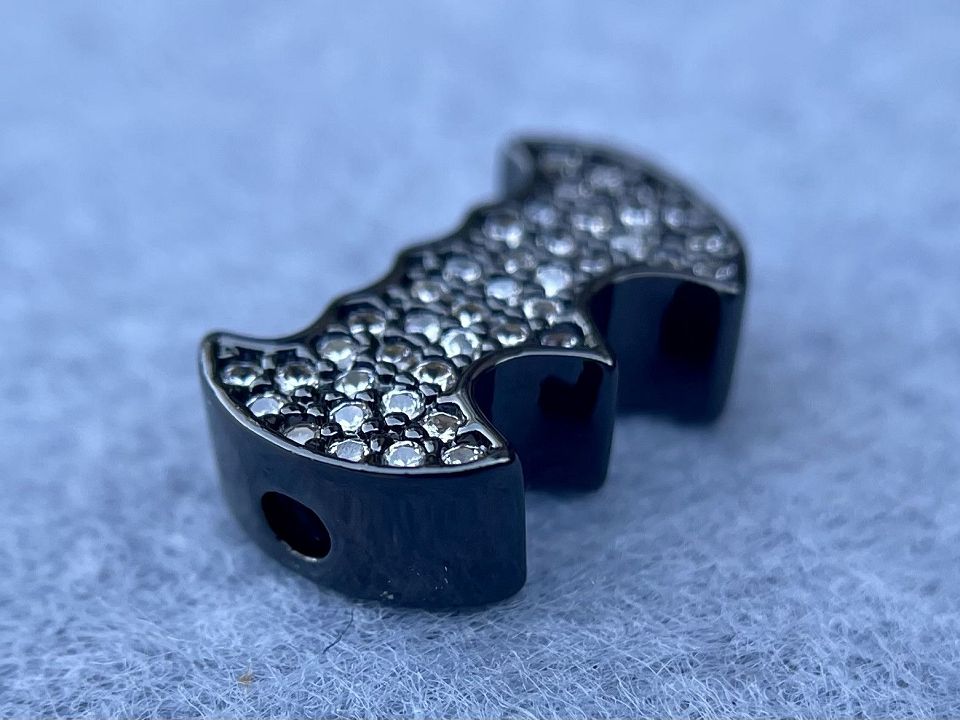 Бусина інкрустована Кубічним цирконієм (також називаються намистинами з фіанітами) Покриття родій Колір-чорний. Розмір: 8*13мм; товщина-4мм, отвір-2мм. Ціна за 1шт