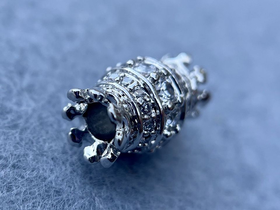 Бусина інкрустована Кубічним цирконієм (також називаються намистинами з фіанітами) Покриття родій Колір-сталь. Розмір: 12 * 8мм; товщина-8мм, отвір-3мм. Ціна за 1шт