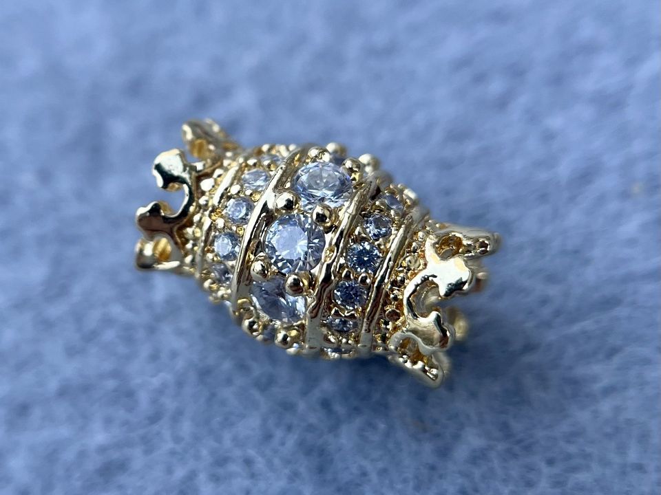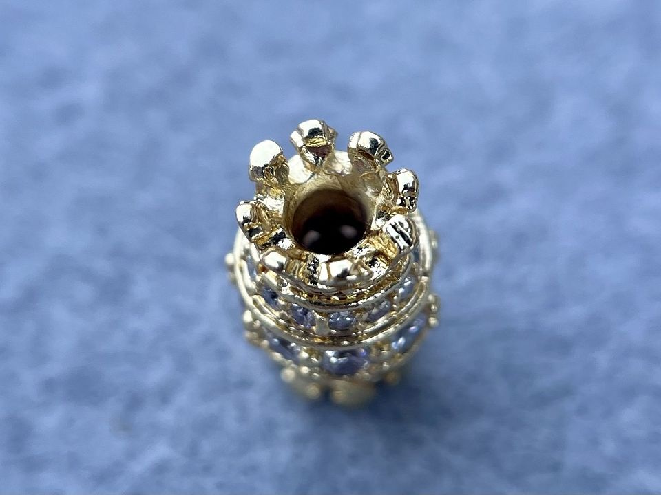 Бусина інкрустована Кубічним цирконієм (також називаються намистинами з фіанітами) Покриття родій Колір-золото. Розмір: 12 * 8мм; товщина-8мм, отвір-3мм. Ціна за 1шт
