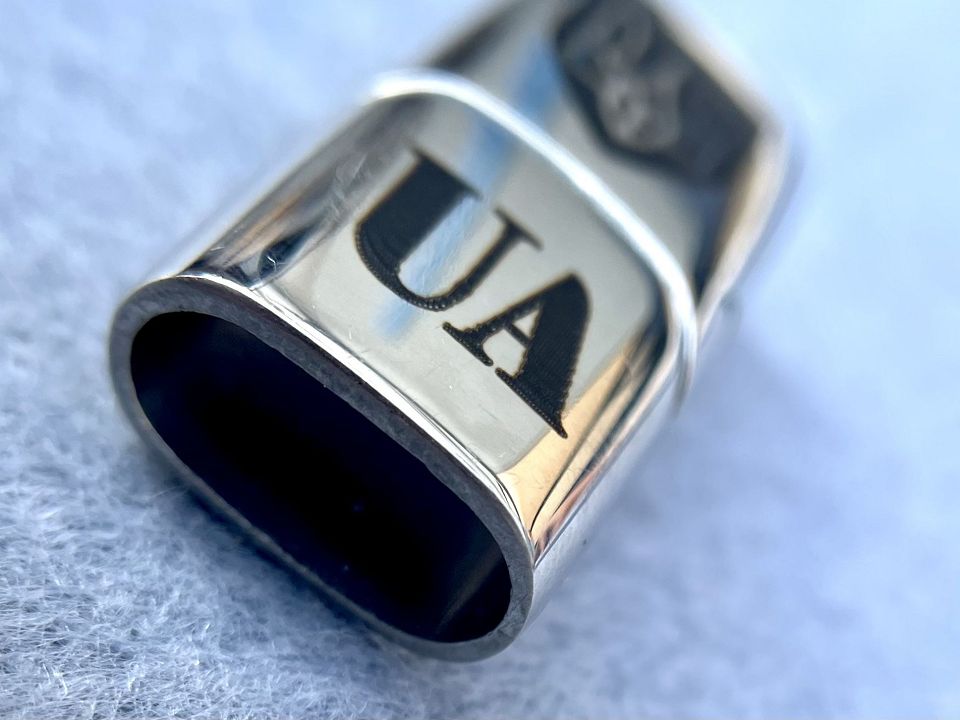 Замок магнітний з гравіюванням із нержавіючої сталі. Відмінно підходить для шкіряних браслетів. Колір-сталь. Розмір: 3см*1,4см, розмір отвору-0,65*1,2см. Ціна за 1шт