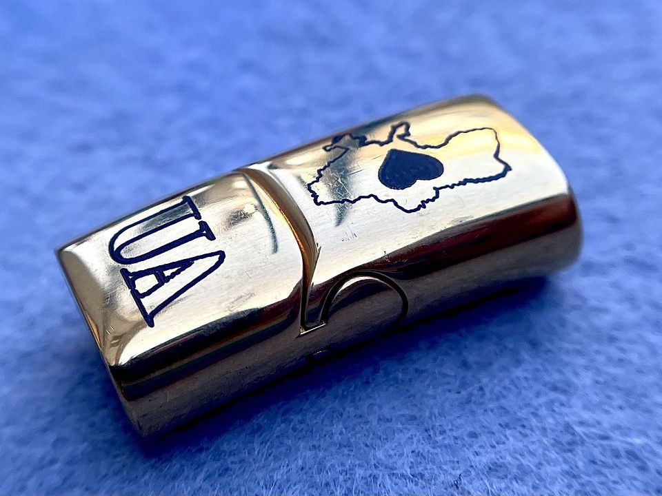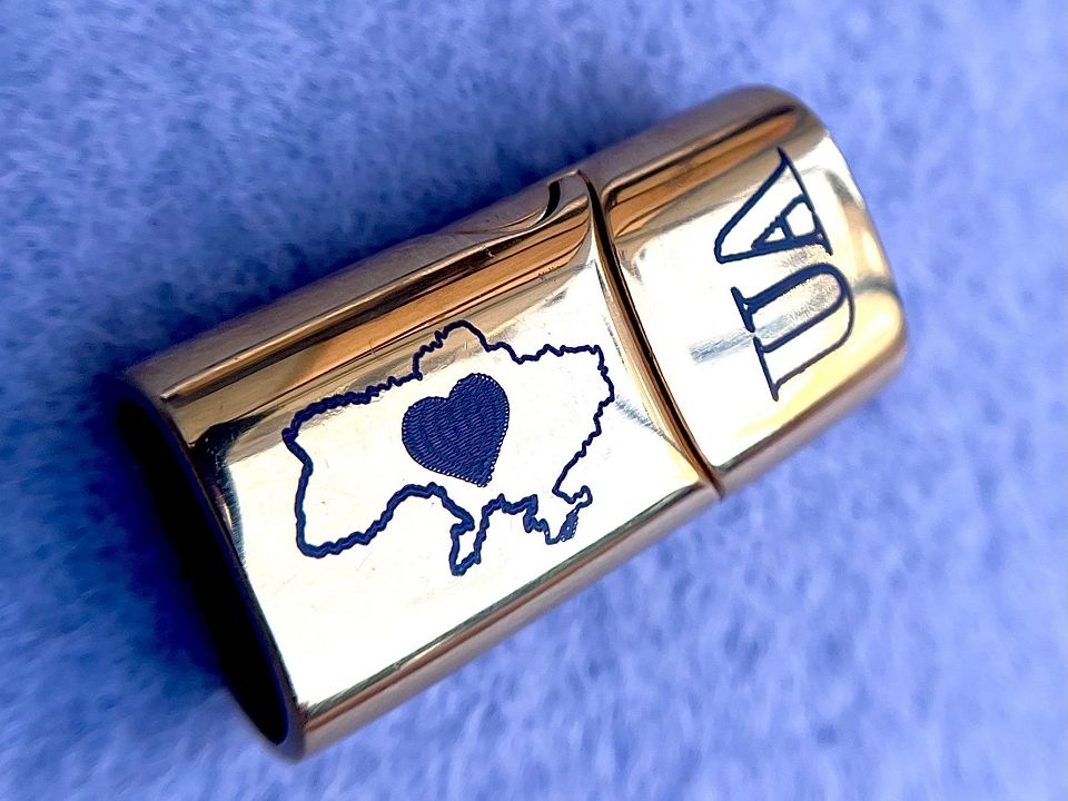 Замок магнітний з гравіюванням із нержавіючої сталі. Відмінно підходить для шкіряних браслетів. Колір-золото. Розмір: 3см*1,4см, розмір отвору-0,65*1,2см. Ціна за 1шт
