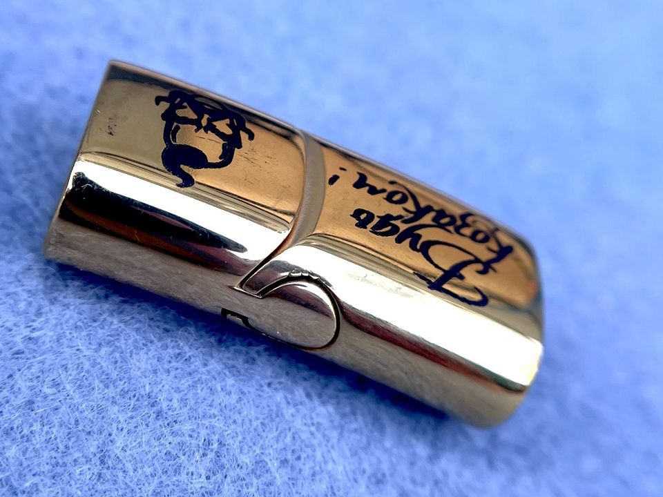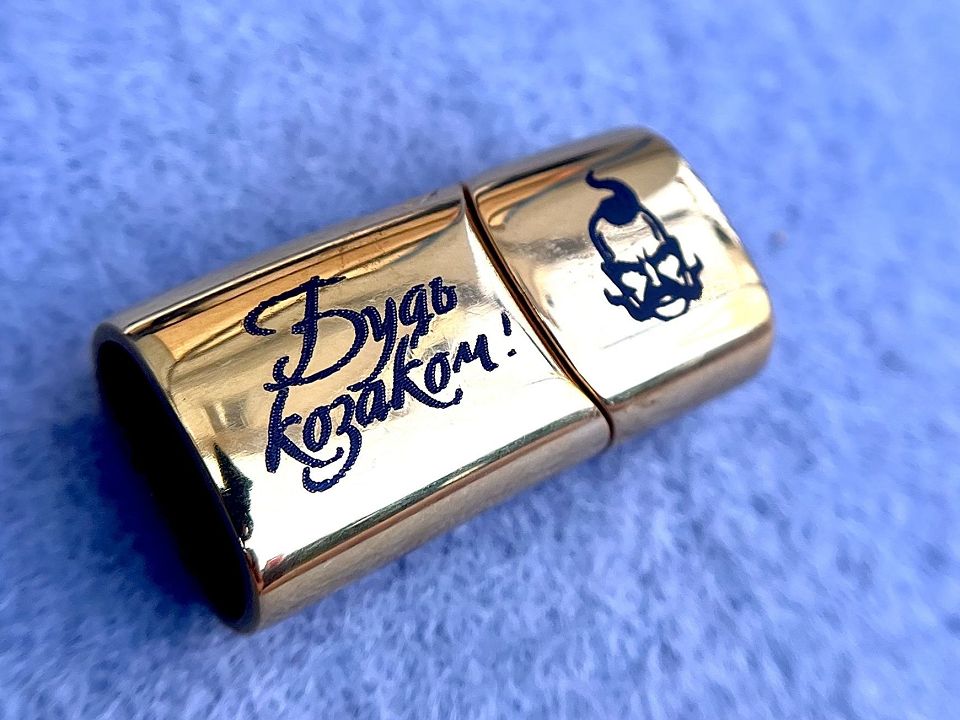 Замок магнітний з гравіюванням із нержавіючої сталі. Відмінно підходить для шкіряних браслетів. Колір-золото. Розмір: 3см*1,4см, розмір отвору-0,65*1,2см. Ціна за 1шт