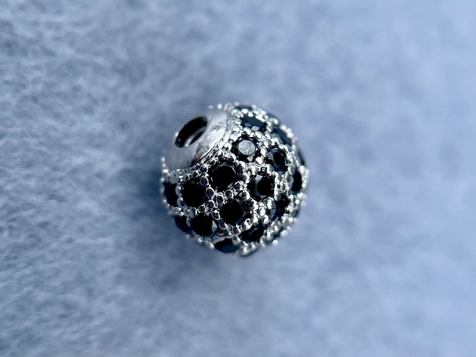 Намиста інкрустовані Кубічним цирконієм (також називають намистинами з фіанітами) Покриття родій Колір-сталь. Діаметр: 8мм, отвір: 2мм. Ціна за 1шт