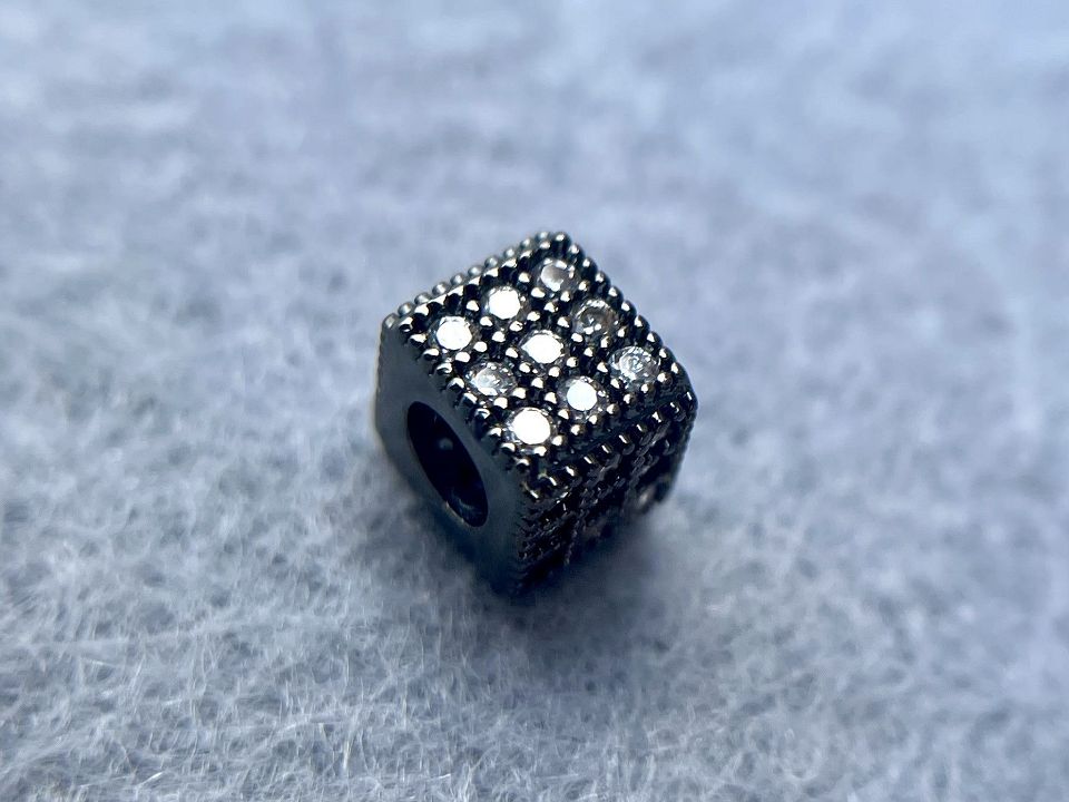 Бусина інкрустована Кубічним цирконієм (також називаються намистинами з фіанітами) Покриття родій Колір-чорний. Розмір: 5 * 6мм; висота-6мм, отвір-3мм. Ціна за 1шт