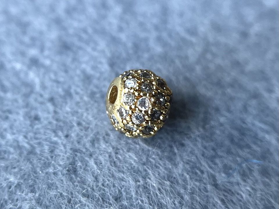 Намиста інкрустовані Кубічним цирконієм (також називають намистинами з фіанітами) Покриття родій Колір золото. Діаметр: 5мм, отвір: 1мм. Ціна за 1шт