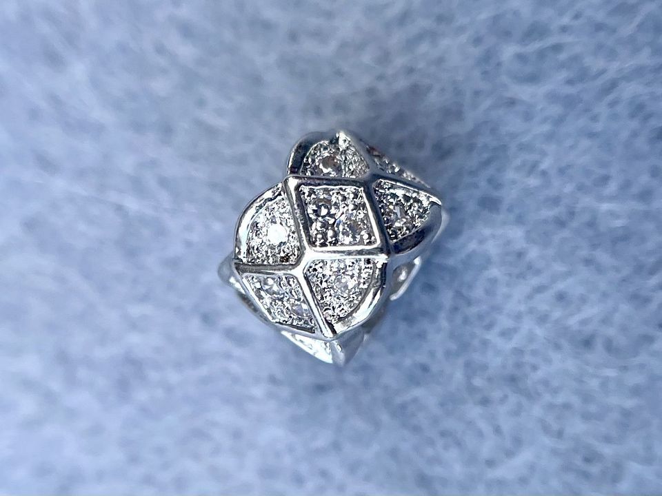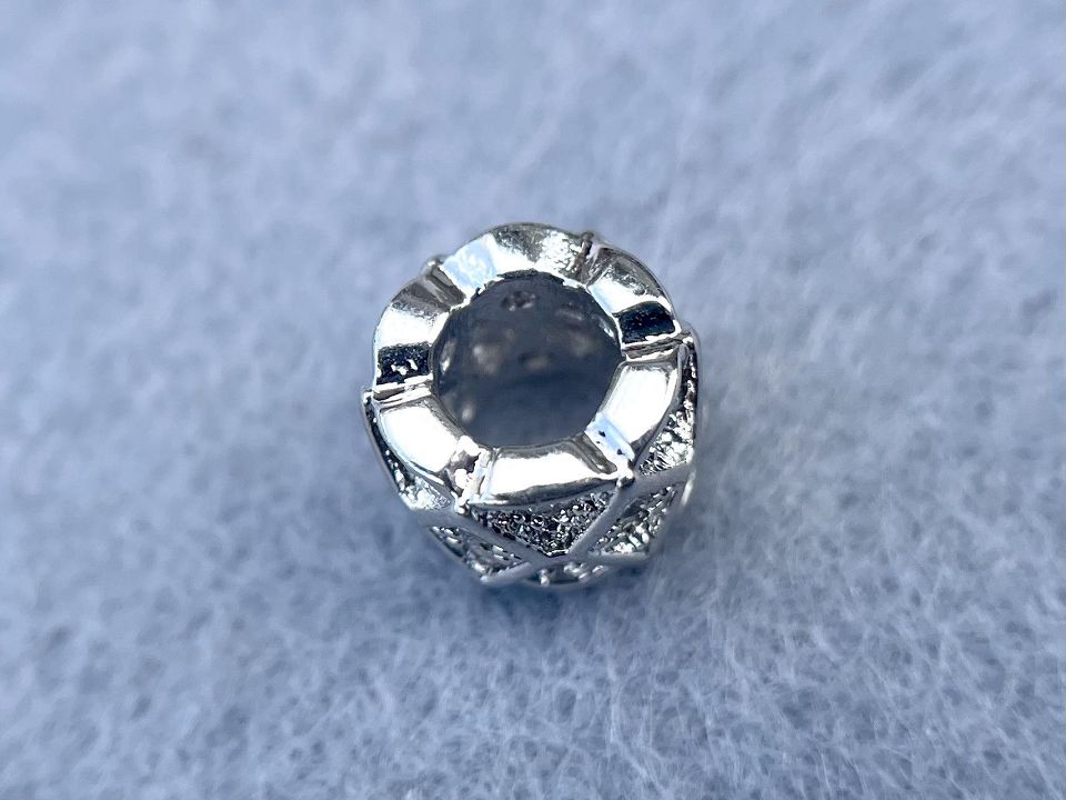 Намистини інкрустовані Кубічним цирконієм (також називаються намистинами з фіанітами) Покриття родій Колір-сталь. Розмір: 6*7мм, отвір-4мм. Ціна за 1шт