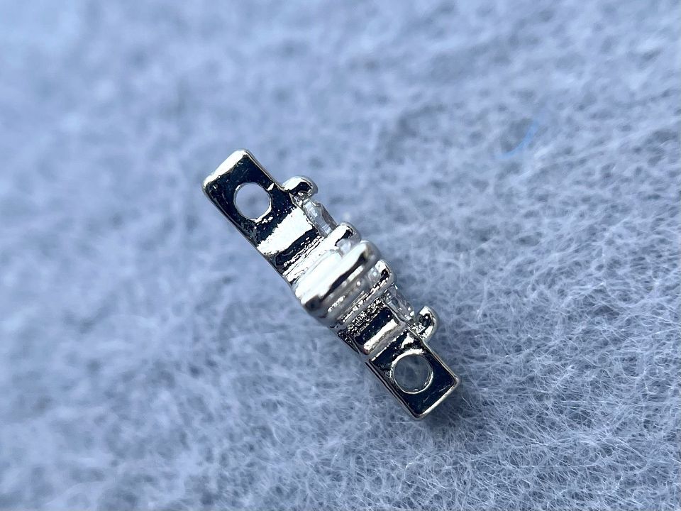 Конектор для біжутерії -Мілано класу люкс (MILANO LUX), з інкрустацією цирконієм із латуні з родієвим покриттям. Колір-сталь. Розмір: 0,8 * 1,2см. Ціна за 1 штуку. Ідеально підійде для дрібних ланцюгів на шию, а також може використовуватись для браслетів.