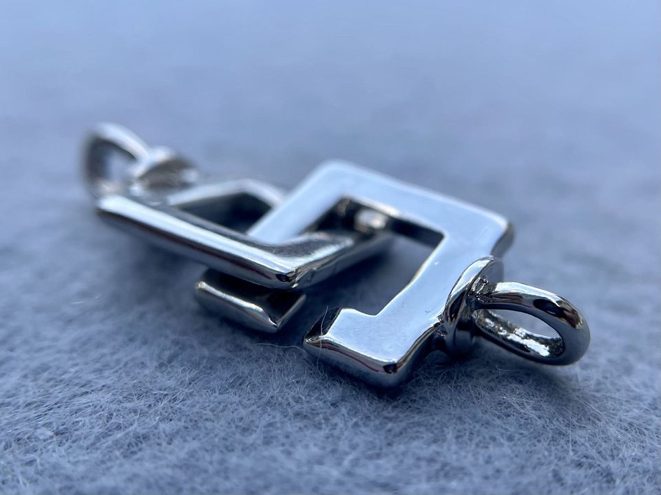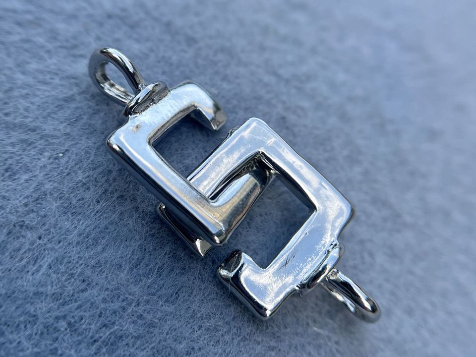 Застібка, що складається з двох половин. Матеріал - латунь з родієвим покриттям
