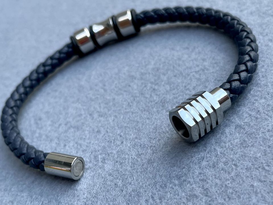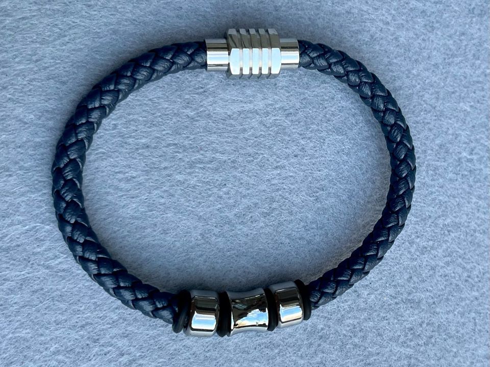 Плетений шкіряний браслет зі сталевою застібкою з нержавіючої сталі та декоративними елементами. Розмір: 21см, ідеально підійде на зап'ястя від 16-19,5см.