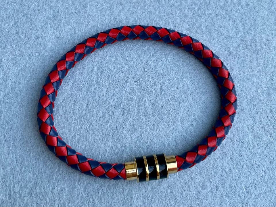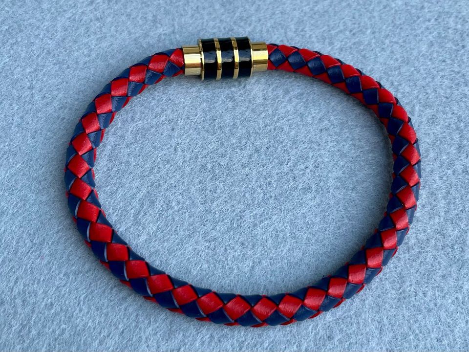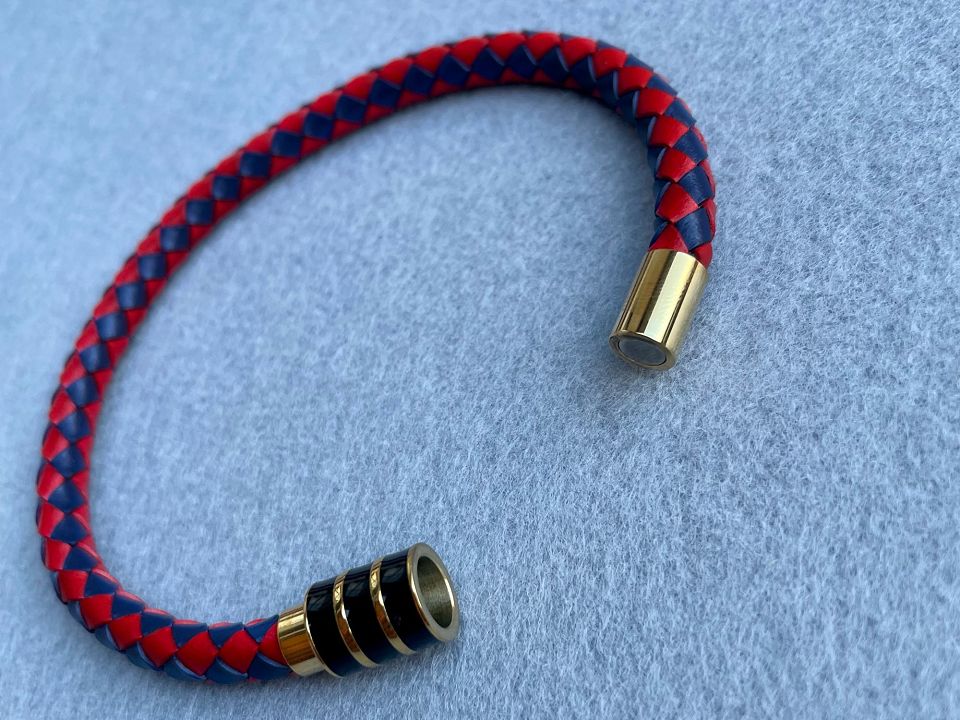 Плетений шкіряний браслет із золотою застібкою з нержавіючої сталі. Розмір: 21,5см, ідеально підійде на зап'ястя від 16-19,5см.