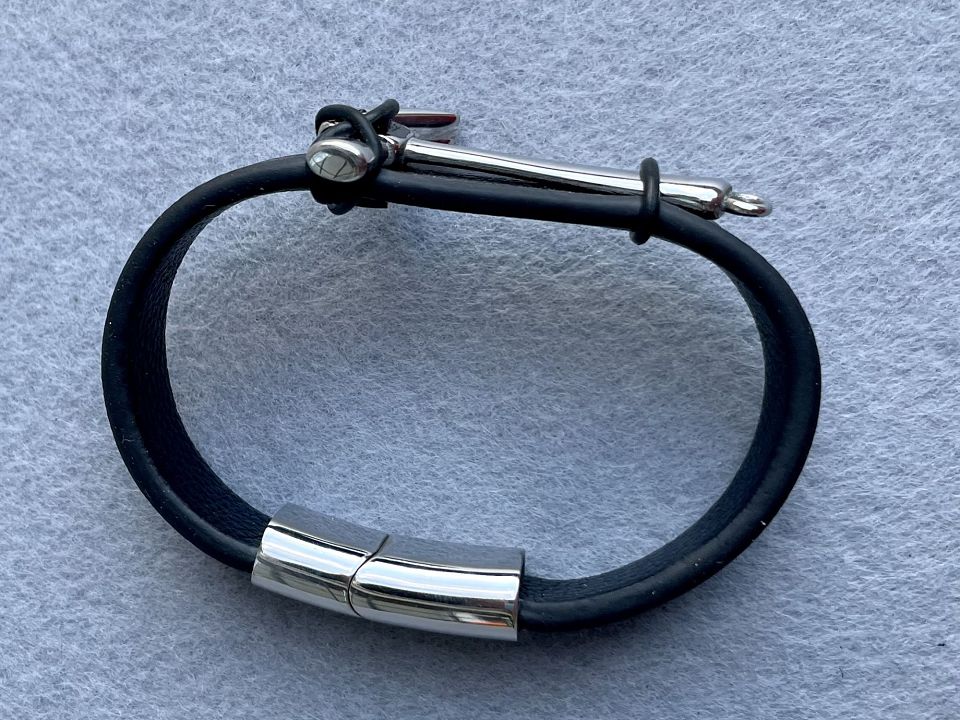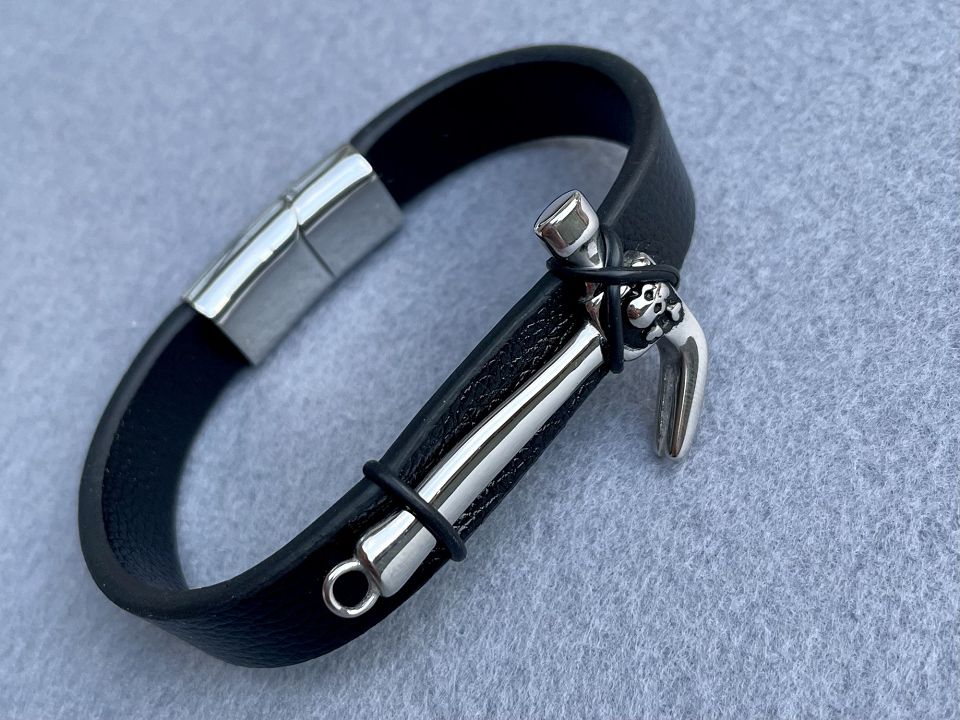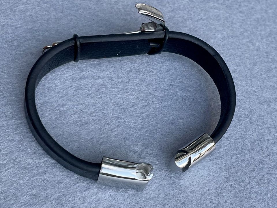 Шкіряний браслет зі сталевою застібкою з нержавіючої сталі та декоративним елементом. Розмір: 21см, ідеально підійде на зап'ястя від 17-19см.