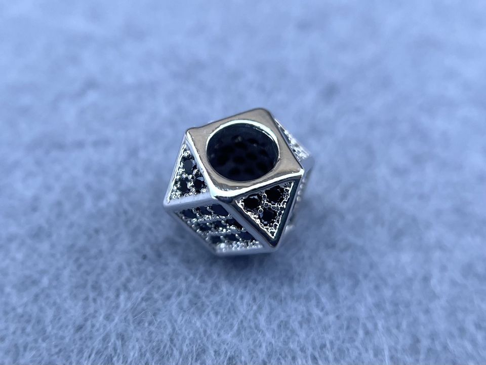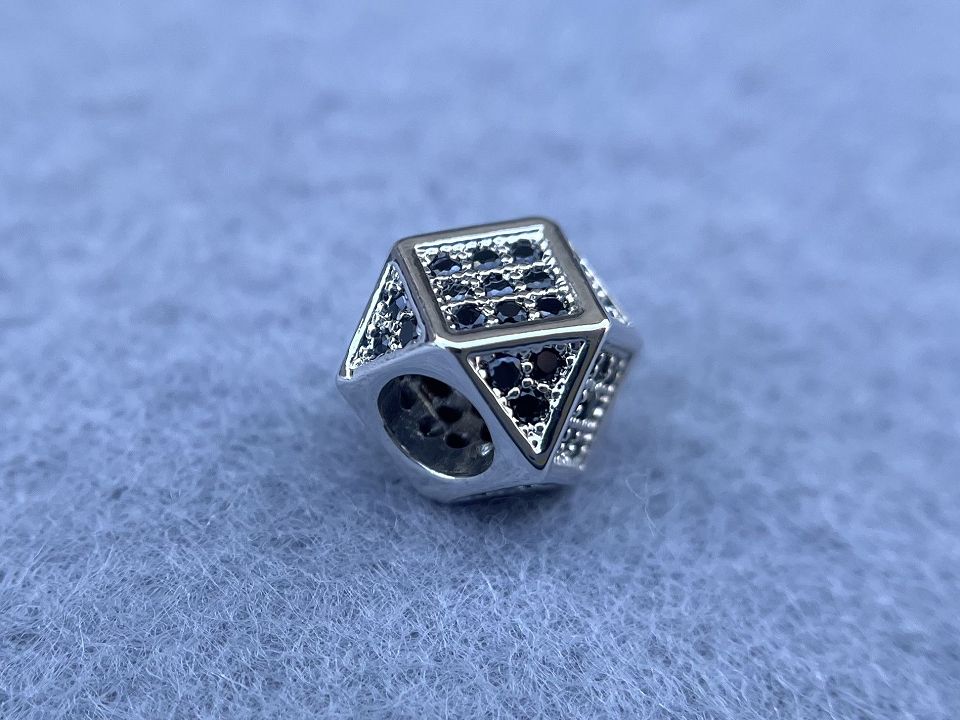 Намистини інкрустовані Кубічним цирконієм (також називаються намистинами з фіанітами) Покриття родій Колір-сталь. Розмір: 7*7мм, отвір-4мм. Ціна за 1шт