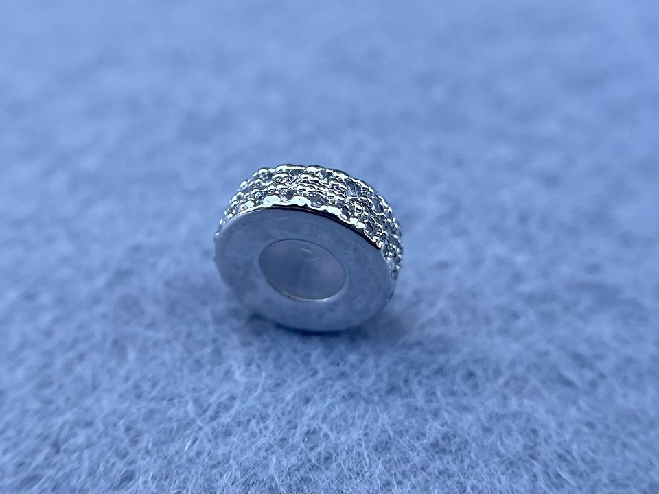 Усередині намистини є силіконова вставка з отвором 1 мм, яка фіксує намистину на основі і не дає по ній ковзати.
