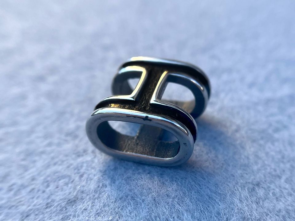 Бусина-протяжка з нержавіючої сталі для виготовлення біжутерії. Використовуються для шкіряних шнурів, ланцюгів, парокорду. Розмір: 15 * 16мм, отвір: 6 * 12мм. Колір-сталь. Ціна за 1шт.