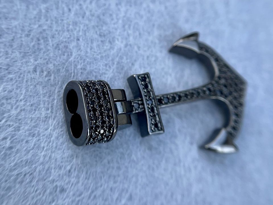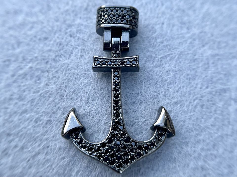 Анкерна застібка із кінцевиком. Матеріал - латунь із родієвим покриттям, з інкрустацією кубічним цирконієм.