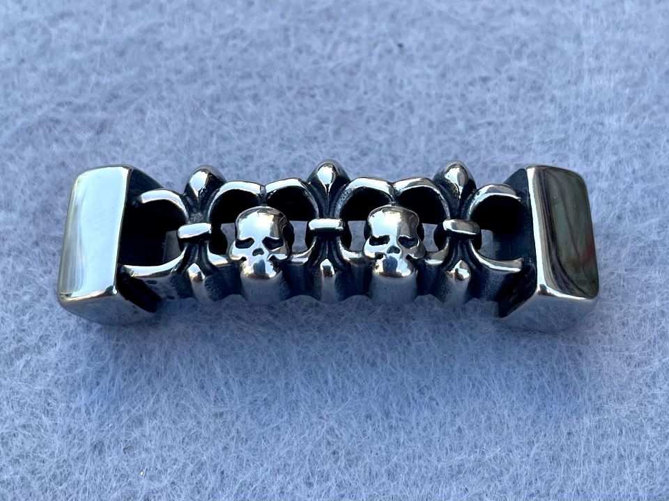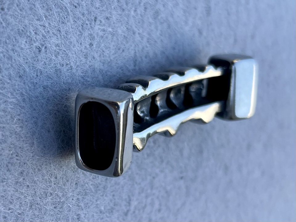 Протяжка із нержавіючої сталі для виготовлення біжутерії. Використовуються для шкіряних шнурів, ланцюгів, парокорду. Має заглиблення для вклеювання. Розмір: 14 * 51мм, отвір: 6,5 * 12мм. Колір-сталь. Ціна за 1шт.
