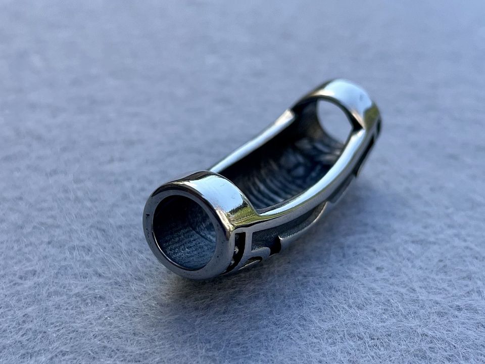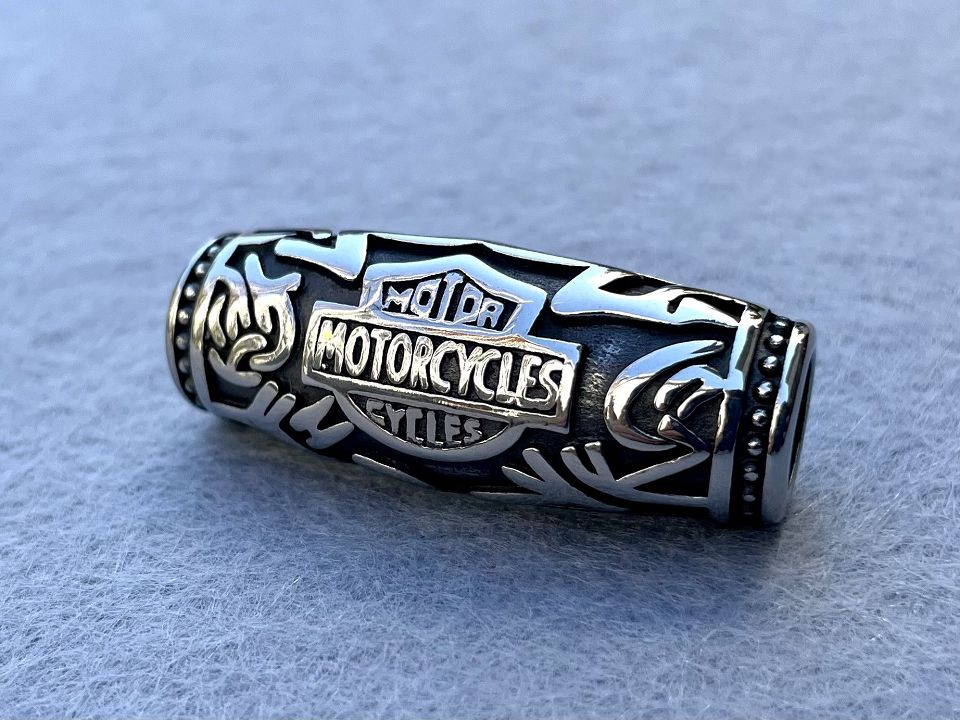 Бусина-протяжка з нержавіючої сталі для виготовлення біжутерії. Використовуються для шкіряних шнурів, ланцюгів, парокорду. Розмір: 16 * 40мм, отвір: 8мм. Колір-сталь. Ціна за 1шт.