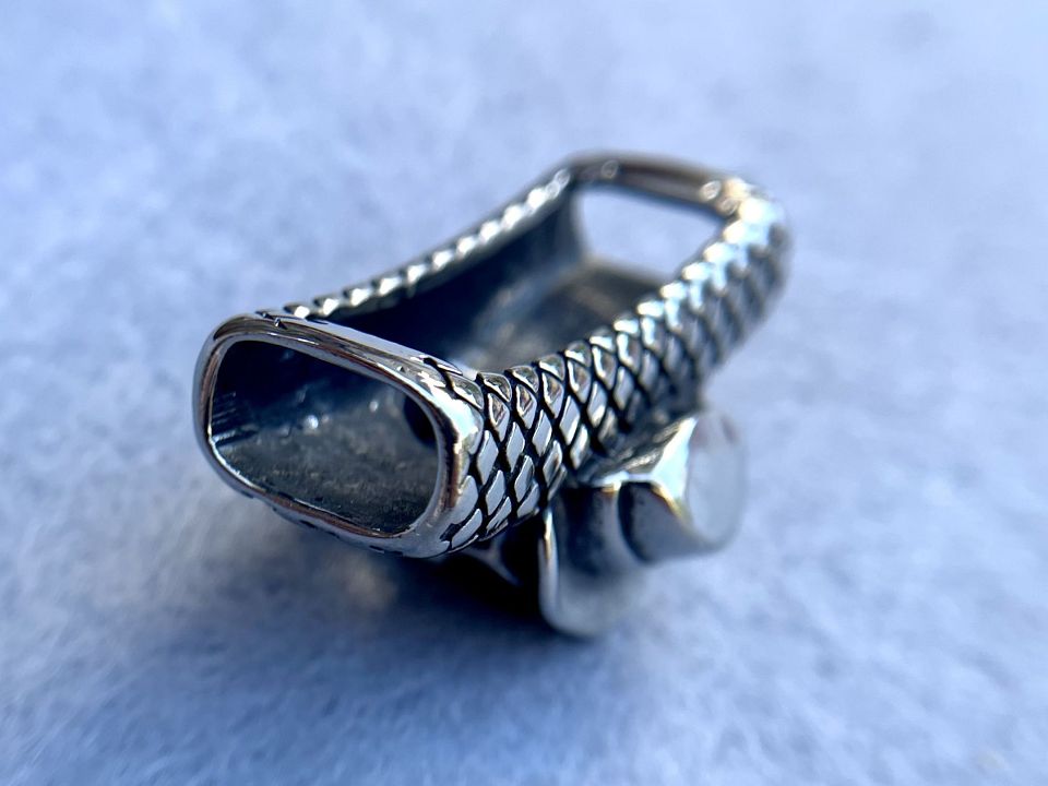 Бусина-протяжка з нержавіючої сталі для виготовлення біжутерії. Використовуються для шкіряних шнурів, ланцюгів, парокорду. Розмір: 24 * 38мм, отвір: 6,5 * 12,5 мм. Колір-сталь. Ціна за 1шт.