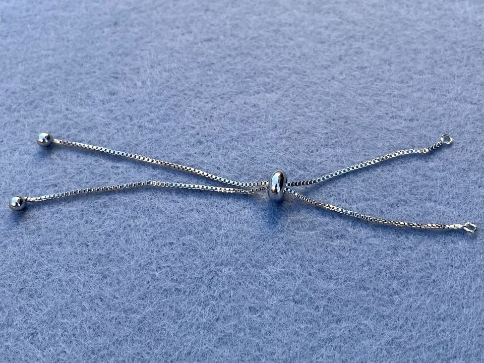 Регульований браслет боло - Milano Lux. Покриття родій. Для роздільників, з намист-стопером і кульками на кінцях. Довжина 11см. Колір-сталь. Ціна за 1 шт