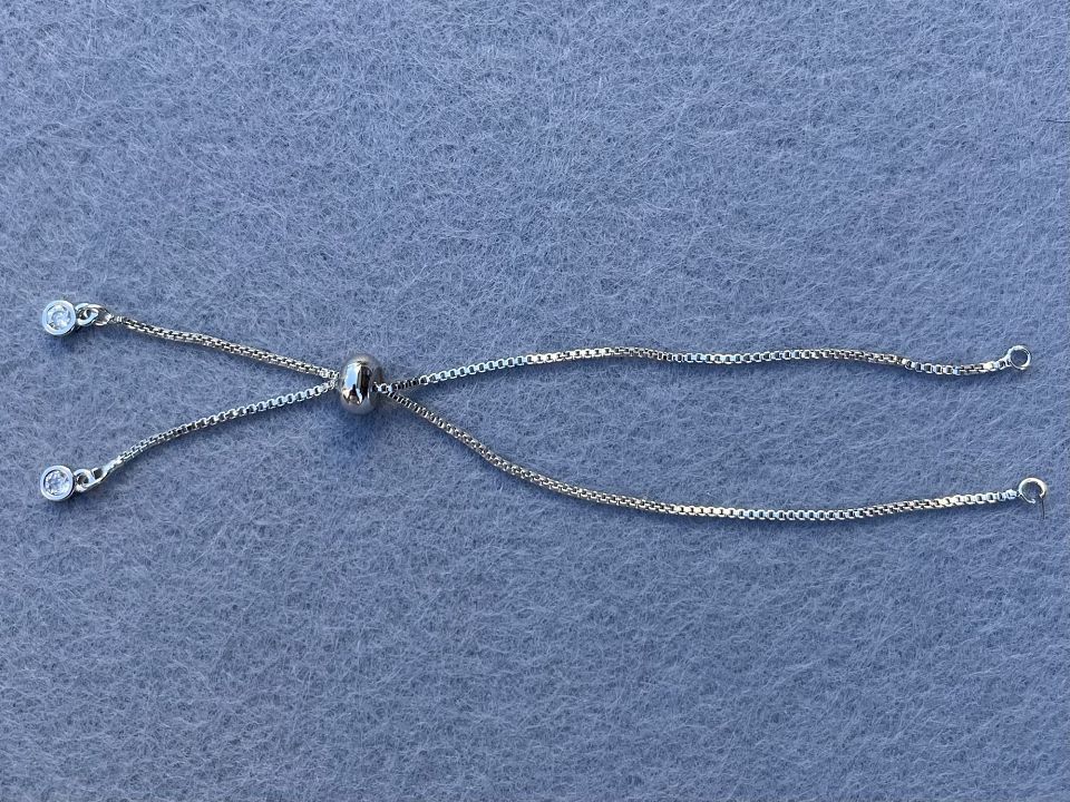 Регульований браслет боло - Milano Lux. Покриття родій. Для роздільників, з намистом-стопером і стразами на кінцях. Довжина 12см. Колір-сталь. Ціна за 1 шт