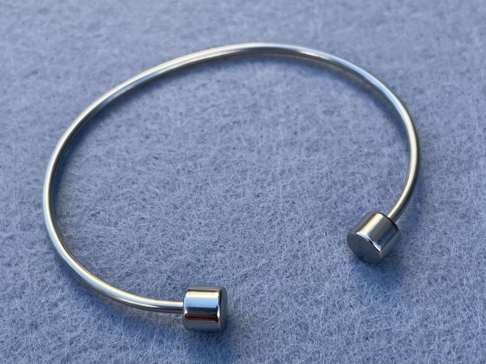 Основа для браслета у стилі Pandora у формі овалу. Покриття родій. Розмір внутрішній-6,5 * 5см. З циліндрами, що розкручують, на кінцях. Колір-сталь. На таку основу можна нанизувати намистинки з отвором від 2мм. Хоча основа досить жорстка, для зручності її можна трохи піджати формою зап'ястя. Ціна за 1 штуку.