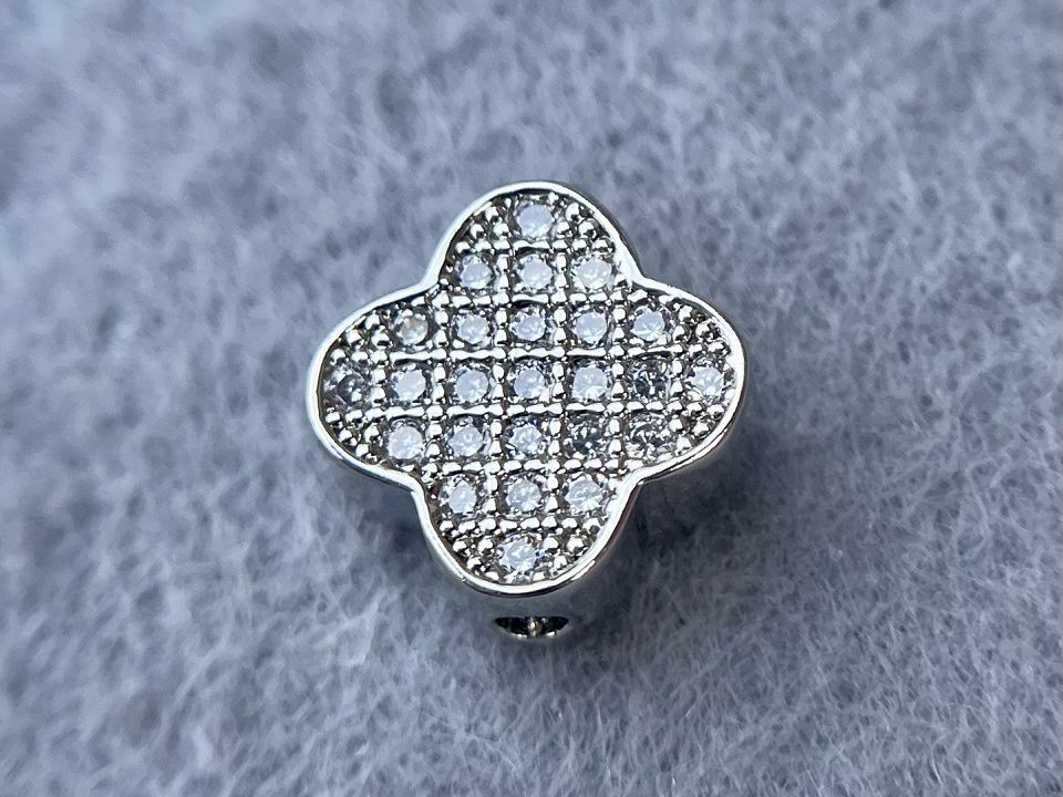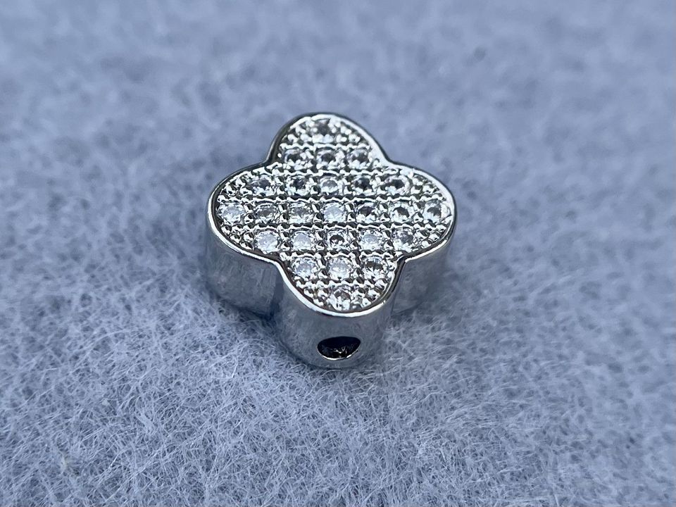 Бусина інкрустована Кубічним цирконієм (також називаються намистинами з фіанітами). Покриття родій. Колір – сталь. Розмір: 10 * 10мм, отвір-2мм. Ціна за 1 шт