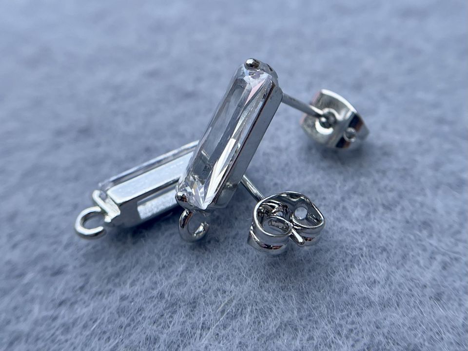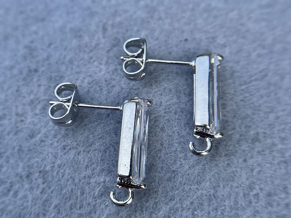 Швенза-гвоздики Milano Lux. Іде з рознімним кільцем для підвісів. Покриття родій. Інкрустовані фіанітами. Розмір швензи: 16 * 5мм, йдуть із заглушками. Колір – сталь. Ціна за пару.