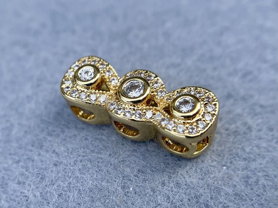 з інкрустацією цирконієм із латуні з родієвим покриттям. Підходить на 3 ряди намиста -6мм і 2 ряди 10-12мм.
