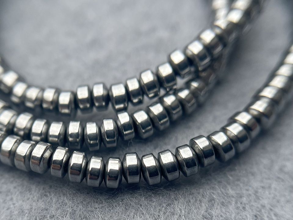 Гематит-натуральний, гладкий. Розмір намистини: 2*3мм. Кількість намистин на нитці: 205 (+-2шт). Отвір: 1мм. Ціна за нитку (без замку). Довжина нитки: 39.5 см